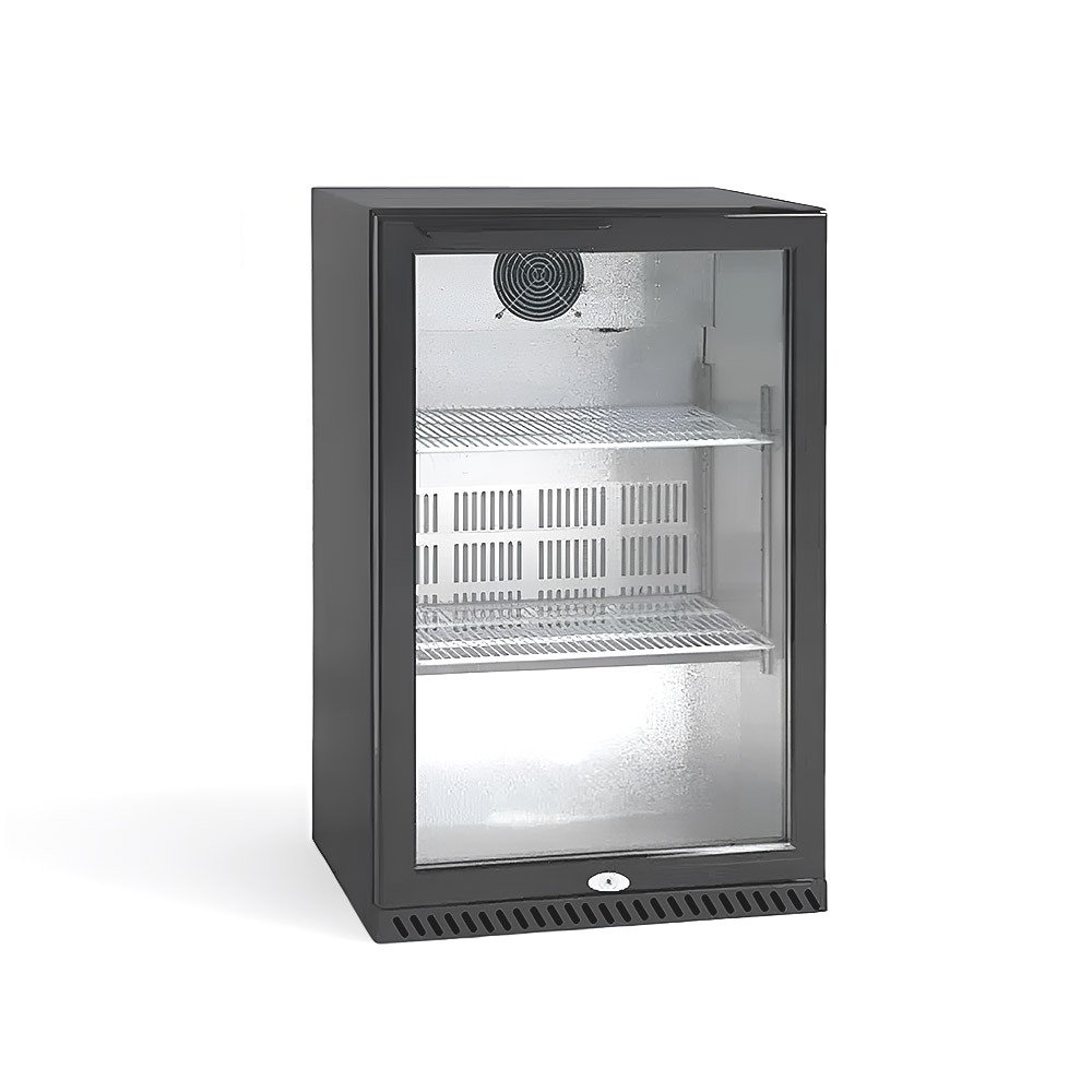 Vonkajšie prevedenie lakované čierné, vnútorné prevedenie z hliníku. Automatické odmrazovanie, elektronický termostat, digitálny ukazovateľ teploty, otvárateľná dvierka, ventilované chladenie, vnútorné osvetlenie.