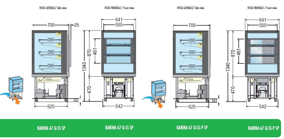 Vitríny Karina Q-SS sú dostupné v troch veľkostiach, aby presne vyhovovali vašim priestorovým možnostiam:
