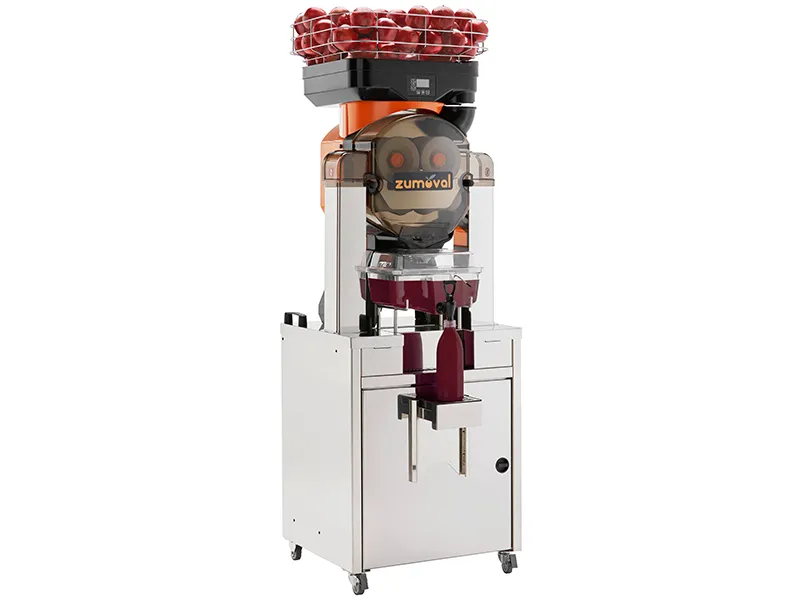 Navrhnutý pre stolové odšťavovače. Umožňuje zdvihnúť odšťavovač o 13 cm, aby sa uľahčilo naplnenie fliaš o objeme do 1 litre s dokonalým nastavením pod kohút. Spolu s filtrom Pulp-Out vám umožňuje odstrániť semená a pece priamo do odpadkového koša.
