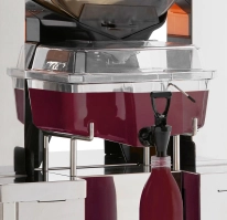 Nerezový samoobslužný kohútik je špeciálne navrhnutá na prevádzku v režime samoobsluhy. Keď je kohútik otvorený, stroj začína odšťavovať a zastavuje sa pri zatvorení kohútika. Otočením kľučky kohútika na seba môžete vybrať medzi kontinuálnym a diskontinuálnym plnením.