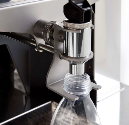 Držiak na fľaše Zumoval sa prispôsobuje kohútu Self-Inox, čo umožňuje plnenie fliaš bez toho, aby ste ich museli držať. Ideálne riešenie pre pohodlie v režime samoobsluhy.