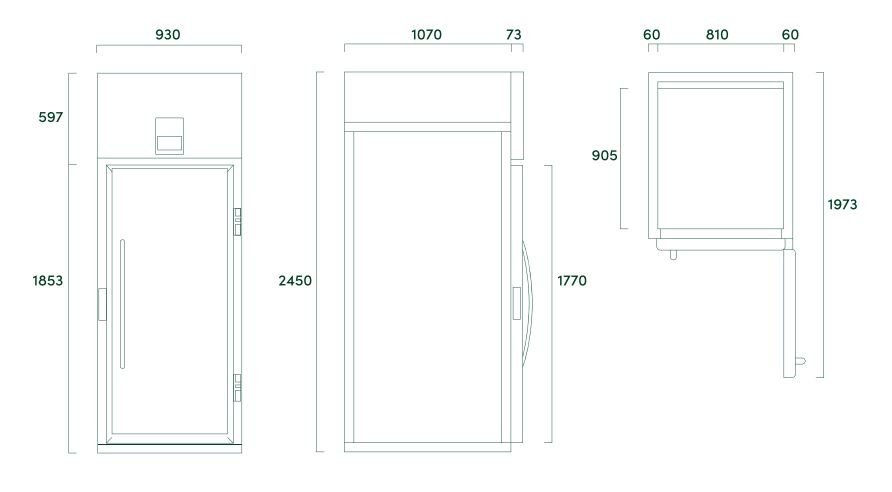 Vnútorne užitočné rozmery: 770 x 905 x 1770 mm