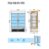 Mraziaca skriňa ktorá ponúka dokonalé uchovanie spracovaných potravín a nápoje. Ventilované chladenie. Digitálny ovládací panel teploty. Automatické odmrazovanie a odparovanie. 4+4x police 615 x 445 mm, sklenené dvere s vertikálnou rukoväťou, vetranie cez výparník, LED osvetlenie. Zámok.