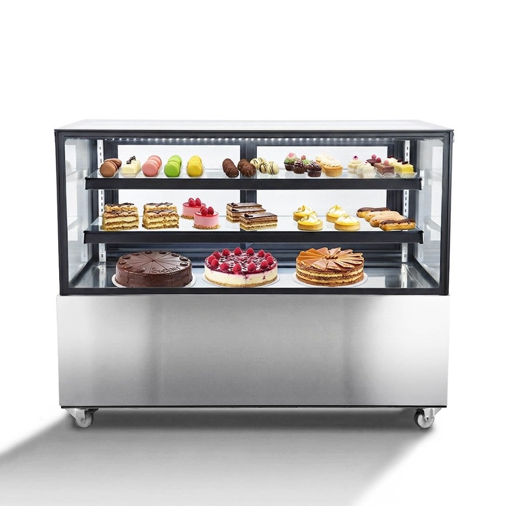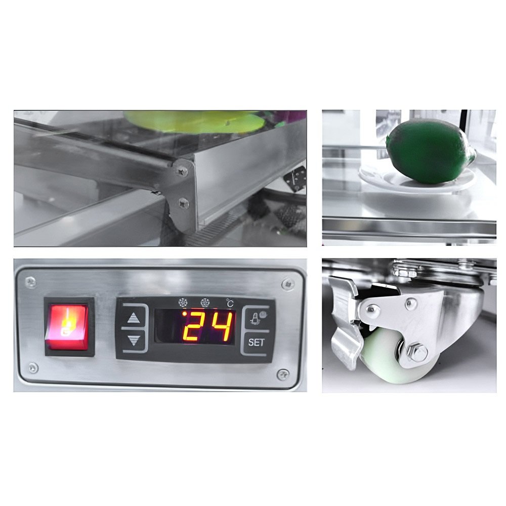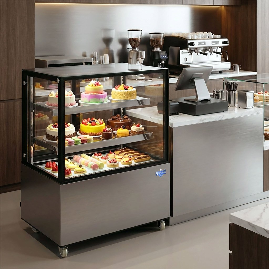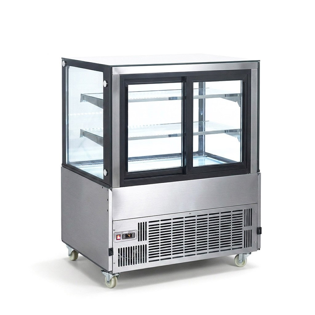 Prémiová chladnička na zákusky z nehrdzavejúcej ocele s dvojitým zasklením a objemom 370 litrov pre cateringové použitie