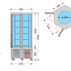 Dvojité termoizolačné sklo, nerezové prevedenie, otvárateľné dvere, vnútorné LED osvetlenie, 4x kolieská, ventilované chladenie, digitálne ovládanie, automatické odmrazovanie, manuálne odparovanie kondenzu.