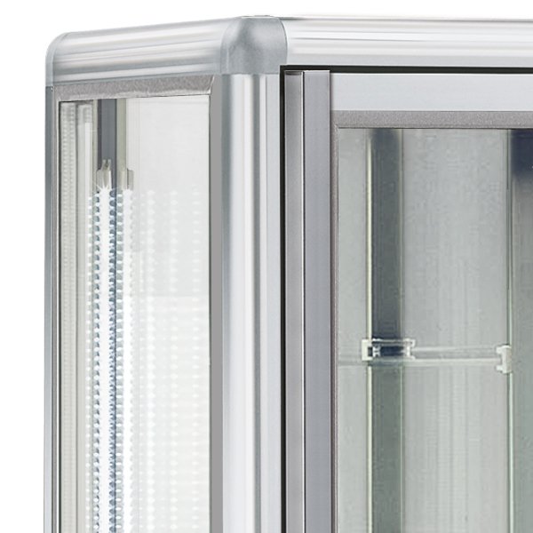 Otvárateľné dvere. LED osvetlenie s vysokou účinnosťou a úsporou energie. Ventilované chladenie, digitálne ovládanie s dotykovým displayom, automatické odmrazovanie, automatické odparovanie kondenzu.