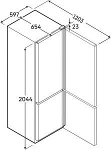 Vonkajšie rozmery (Š x H x V): 597 × 654 × 2044 mm
