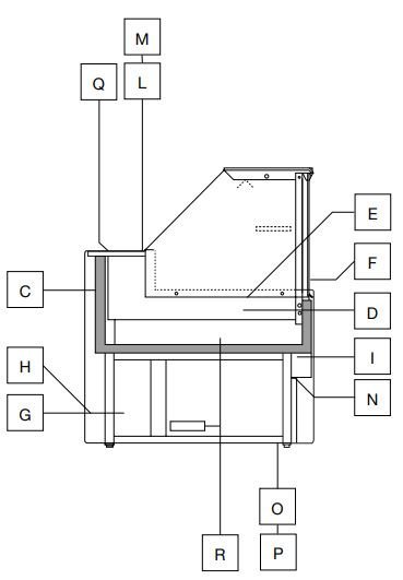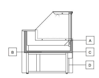 B: Stredná sklenená polica bez osvetlenia (nechladená)