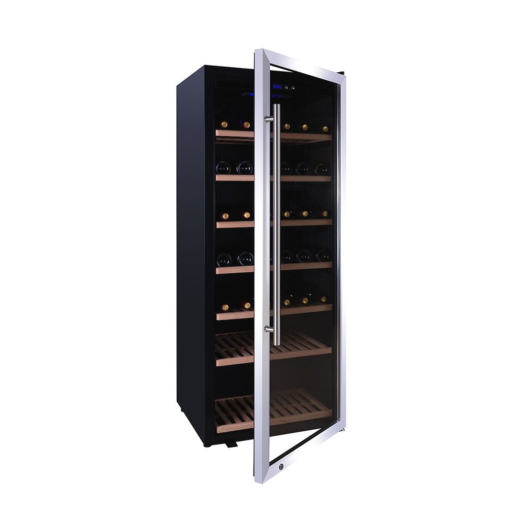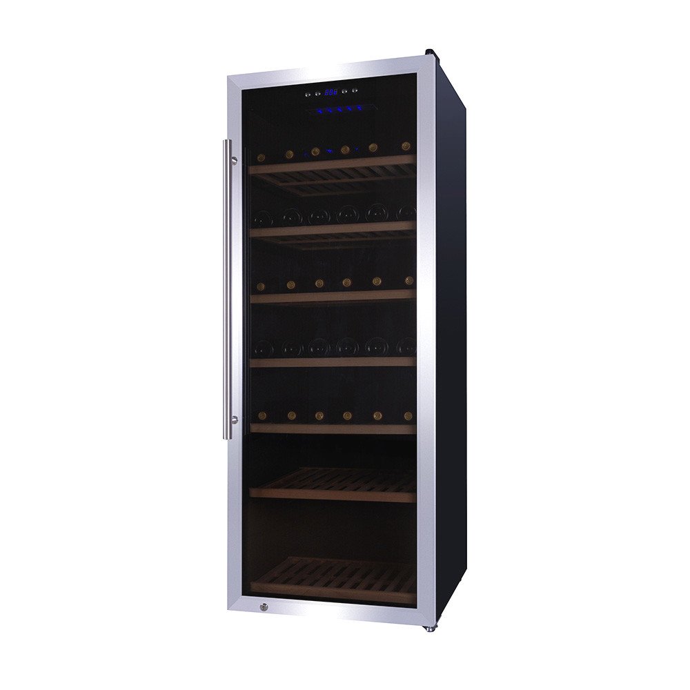 Samostatne stojaca chladnička na víno, ktorá dokonale vyhovuje vašim individuálnym potrebám skladovania vína. Vďaka svojmu štýlovému vzhľadu je tou najlepšou voľbou pre každého milovníka vína. Veľkokapacitné zariadenie pojme až 192 fliaš naraz. Moderný dizajn, sklenené dvierka a drevené police sa perfektne hodia do každého obchodu alebo dokonca do domácnosti.