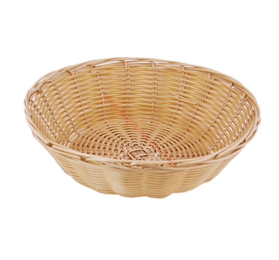 Okrúhly kôš z plastu s ratanovým vzorom, rozmer 21×8 cm.