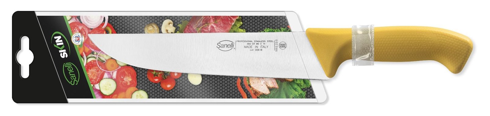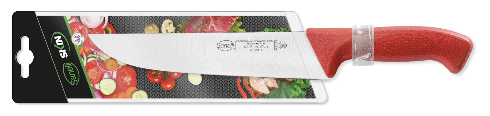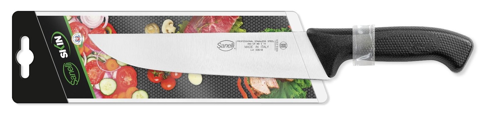 Nová línia Skin kombinuje osvedčenú vysokú kvalitu čepelí Sanelli s úplne novou rukoväťou. Pomocou inovatívnej technológie “texturovania” sa povrch rukoväte SKIN líši od akéhokoľvek iného a zabezpečuje pevný a pohodlný úchop, eliminuje pocit stuhnutosti. Ergonomický tvar je zárukou bezpečnosti. Použitý materiál spĺňa prísne hygienické a potravinárske predpisy. Kompletná línia nožov, ktorá vďaka vynikajúcemu pomeru kvality a ceny je ideálna pre akýkoľvek typ kuchyne, profesionálnej alebo domácej.
