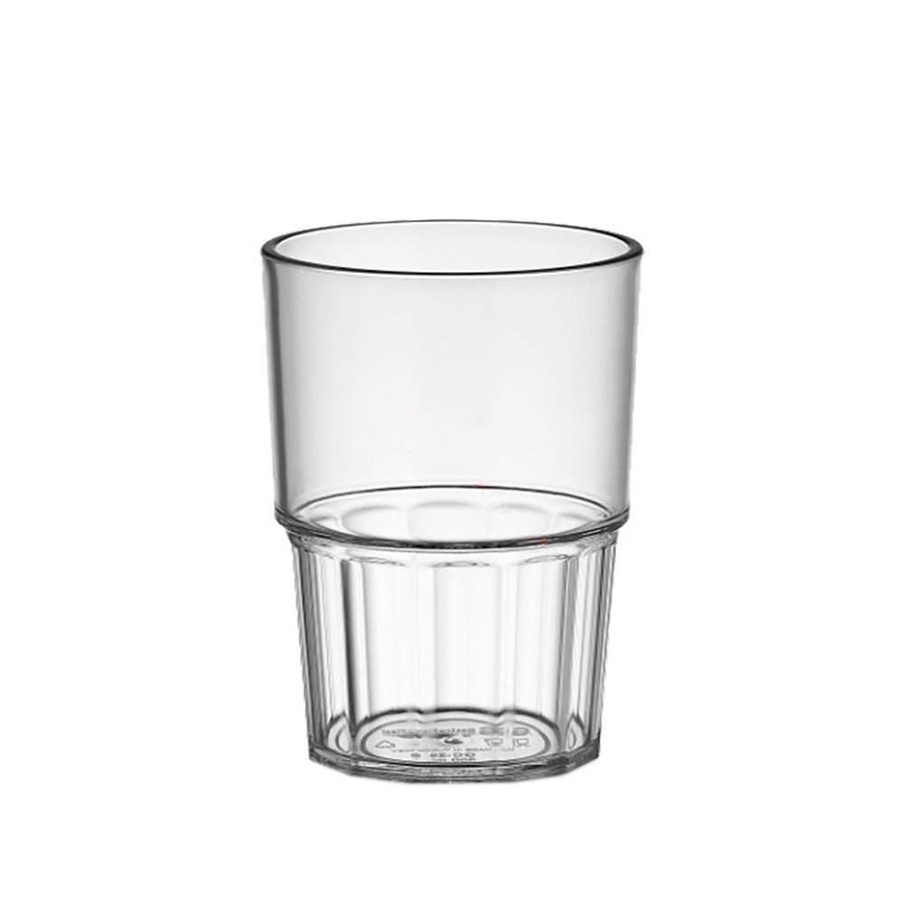 Polikarbonátový pohár, rozmer 7×9 cm, objem 250 ml. Viackrát použiteľný a stohovateľný.