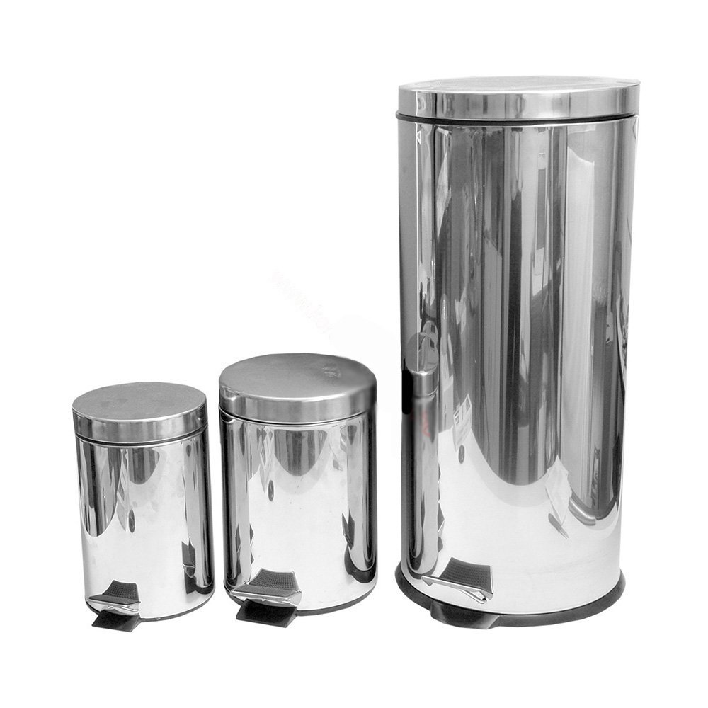 3-dielna súprava odpadkových košov z nehrdzavejúcej ocele. Sada obsahuje tri rôzne veľkosti a objemy: