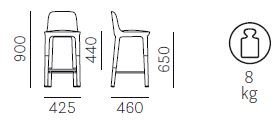 Pedrali Ester 698_H650 – 2 Ks – Barová stolička s čalúneným sedadlom