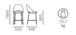 Stolička zaujme oblým operadlom oddeleným od sedadla, čo vytvára ľahký, vzdušný dojem a zároveň poskytuje výnimočný komfort. Je čalúnená kvalitnou penou vstrekovanou do polyuretánu a potiahnutá látkou alebo kožou podľa výberu. Kovové nohy s priemerom 25 mm zabezpečujú stabilitu a zároveň dotvárajú jej sofistikovaný vzhľad.