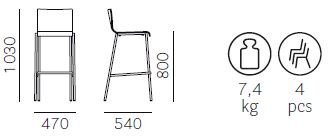 Pedrali Kuadra 1326 – 6 Ks – Barová stolička so škrupinou z jaseňovej preglejky