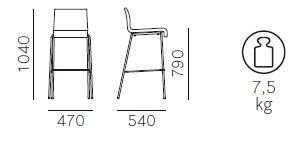 Stolička je vybavená čalúnenou škrupinou, ktorú je možné vyhotoviť buď v textilnom poťahu, alebo v imitácii kože. Stabilitu a odolnosť zabezpečuje oceľový rám z rúrok s priemerom 16 mm.