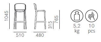 Dome barová stolička s operadlom je najnovším prírastkom do kolekcie, ktorá čerpá inšpiráciu z klasických bistro stoličiek a veľkolepých tvarov kupol historických monumentov. Táto stolička elegantne kombinuje priamu, racionálnu štruktúru s jemnými, oblými líniami. Zakrivené operadlo a ergonomicky tvarované sedadlo poskytujú optimálne pohodlie, zatiaľ čo textúrovaný povrch a jemné drážky dodávajú stoličke nádych sofistikovanej kvality. Vyrobená z polypropylénu zosilneného sklenenými vláknami, je ideálna na použitie v interiéroch aj exteriéroch.