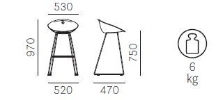 Tvorba talianskych dizajnérov Claudia Dondoliho a Marca Pocciho prináša moderný vzhľad spojený s retro šarmom. Barová stolička je dostupná v rôznych farebných prevedeniach, čím sa ľahko prispôsobí akémukoľvek interiéru.
