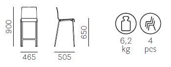 Pedrali Kuadra 1102 – 10 Ks – Barová stolička z polypropylénu