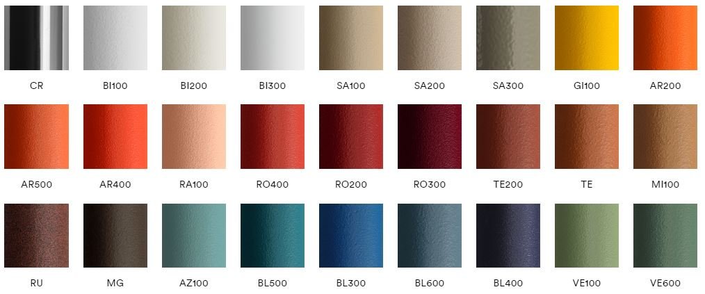 Vyberte si farbu alebo materiál z možností uvedených nižšie. Po výbere požadovanej farby alebo materiálu zadajte jeho kód do horného poľa a vyberte príslušnú kategóriu. Ak kód farby začína písmenom ‘D’, vyberte kategóriu ‘D’, ak začína písmenom ‘C’, vyberte kategóriu ‘C