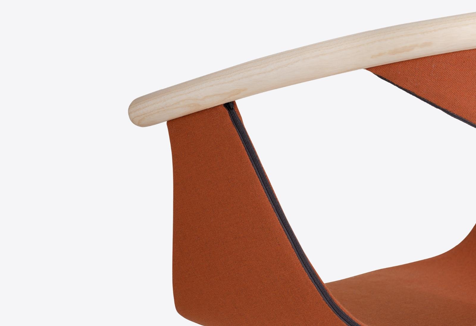 - Operadlo: Oblúkový dizajn z ohýbaného masívneho jaseňového dreva, ktorý poskytuje elegantný a ergonomický oporný bod.