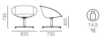 Gliss otočná lounge stolička kombinuje eleganciu, komfort a praktickosť. Inšpirovaná ikonickými stoličkami z 50. rokov, jej dizajn je charakteristický ergonomickým tvarom a jedinečným otvorom v opierke. Táto kolekcia vyniká plynulými podrúčkami, ktoré dokonale obopínajú telo a poskytujú maximálne pohodlie. Ideálna voľba pre všetky typy interiérov – od rezidenčných až po korporátne či pohostinské priestory.