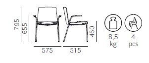 Pedrali Noa 726 – 4 Ks – Kreslo s čalúneným sedadlom
