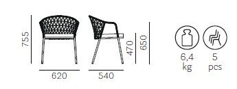 Kreslo Panarea je inšpirované farbami a vánkom pobrežnej večere pri mori. Jeho zadná časť a podrúčky sú ručne opletené polypropylénovou šnúrou v tradičnom talianskom štýle, obopínajúcou oceľový rám s priemerom 20 mm. Sedák je vybavený pohodlným vankúšom z polyuretánovej peny typu “dry-feel”, ktorý je potiahnutý látkou z rovnakej priadze ako výplet – výsledkom je harmonický vzhľad s vysokou odolnosťou voči vlhkosti a opotrebeniu.