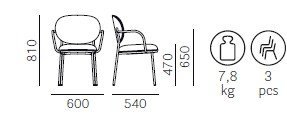 Pedrali Stiel 2965 – 3 Ks – Kreslo s čalúneným sedadlom
