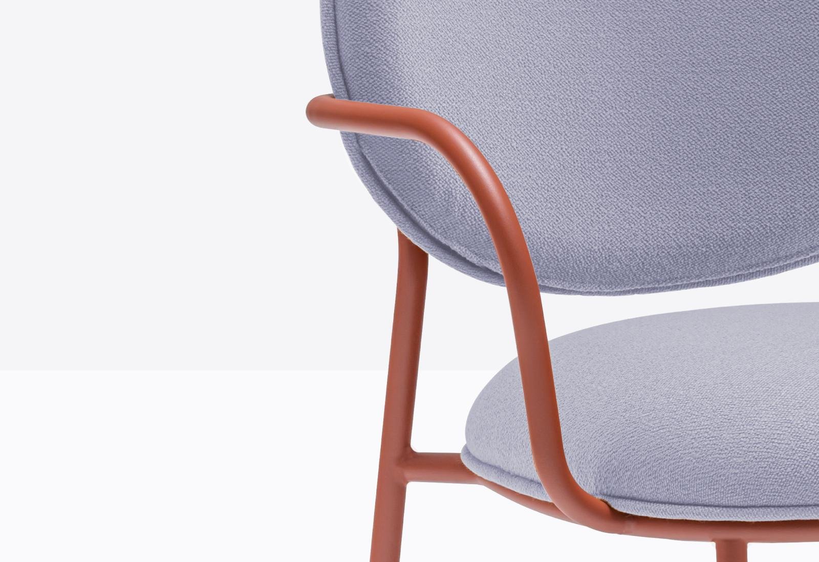 Sedadlo a operadlo z polyuretánovej peny sú pohodlne tvarované a pevne spojené s oceľovým rámom – bez viditeľných spojovacích prvkov. Výsledkom je čistý a sofistikovaný vzhľad, ktorý pôsobí ľahko a zároveň luxusne. Kreslo bolo navrhnuté s dôrazom na pohodu pri sedení aj vizuálnu harmóniu v priestore.