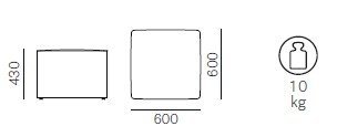 Rozmery: 600 × 600 × 430 mm (šírka × hĺbka × výška)