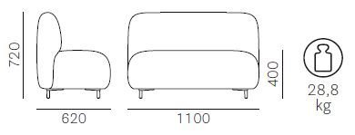 Kolekcia Buddy, ktorá sa skladá z moderných a všestranných prvkov, je charakteristická kontrastom medzi výraznými objemami sedadla a štíhlou, ľahkou konštrukciou. Táto dvojmiestna čalúnená stolička ponúka maximálne pohodlie vďaka použitým materiálom, ako je polyuretánová pena vstrekovaná do formy, ktorá zaisťuje optimálnu podporu. Kovové hliníkové nohy dodávajú stoličke stabilitu a eleganciu. Tento model je ideálny pre rôzne interiérové aj exteriérové prostredia, vrátane hotelových lobby, kancelárskych priestorov a salónikov.