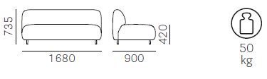 Pohovka je dostupná vo verziách s alebo bez opierok a ponúka možnosť kombinovania viacerých modulov, čím umožňuje flexibilné prispôsobenie podľa individuálnych potrieb. Vďaka robustnej konštrukcii je odolná a vhodná na každodenné používanie v rôznych prostrediach vrátane pohostinstva, pracovných priestorov a obytných zón.