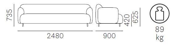 Rozmery: 2480 mm (šírka) x 900 mm (hĺbka) x 735 mm (výška).