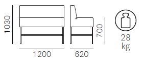 - Rozmery: 1200 × 620 × 1030 mm