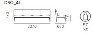 Štíhla silueta, mäkké línie a výnimočné remeselné spracovanie robia z modelu DSO2_4L nielen vizuálne príťažlivý, ale aj mimoriadne praktický kus nábytku. Čalúnenie z penového polyuretánu s elastickými pásmi v operadle aj sedadle poskytuje výnimočný komfort. Minimalistický oceľový rám a koncové nohy z tlakovo liateho hliníka podčiarkujú industriálny, ale zároveň elegantný vzhľad. Všestranný modulárny systém umožňuje rôzne konfigurácie podľa potrieb priestoru.