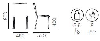 Vyhotovená je z preglejky s dubovou dyhou, ktorá dodáva stoličke prírodný a sofistikovaný vzhľad. Pevný oceľový rám so štvorcovým prierezom 20 × 20 mm zaručuje stabilitu a dlhú životnosť.