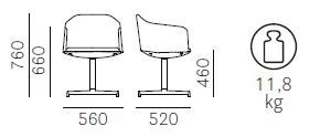 - Rozmery: šírka 560 mm, hĺbka 520 mm, výška 760 mm (výška sedadla 460 mm)