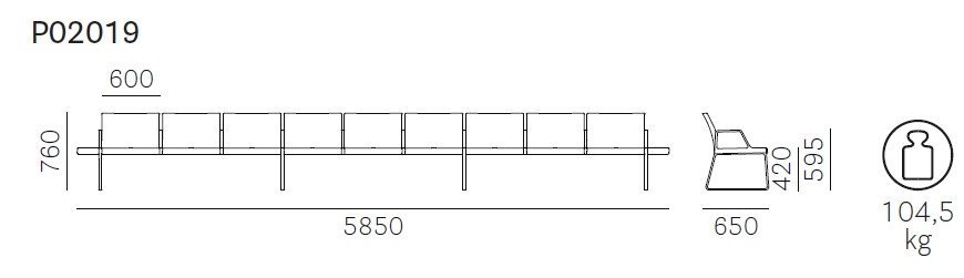 Rozmery (Š x H x V): 5850 x 650 x 760 mm
