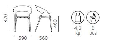 Stolička Gossip 621RM je moderné a elegantné kreslo vyrobené z polypropylénu, ktoré vyniká svojimi plynulými a zaoblenými tvarmi. Je ľahká, stohovateľná a ideálna pre použitie v interiéri aj exteriéri. Táto stolička je dôkazom záväzku značky Pedrali k udržateľnosti, pretože je dostupná aj vo verzii „recycled grey“, ktorá je vyrobená zo 100 % recyklovaného polypropylénu. Tento materiál pozostáva z 50 % plastového odpadu pochádzajúceho od spotrebiteľov a 50 % z plastového priemyselného odpadu.