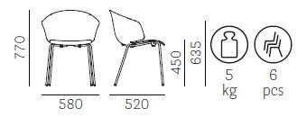 - Sedacia časť a operadlo sú vyrobené z polypropylénu zosilneného sklenenými vláknami, čo zaručuje výnimočnú pevnosť a ľahkosť.