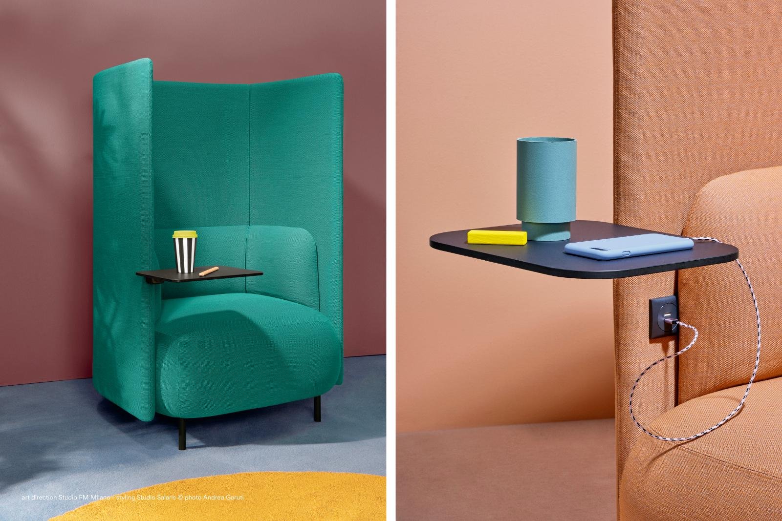 Pedrali Buddyhub BDH001T/100 – Jedno sedadlo s nízkym operadlom s otočným stolíkom