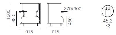 Buddyhub BDH001/100 predstavuje funkčnú a efektívnu izolovanú zónu, ktorá poskytuje akustické a vizuálne súkromie, v súlade s trendmi pre kancelárske priestory. Tento model sa vyznačuje obklopujúcim panelom absorbujúcim zvuk s výškou 1000 mm, ktorý obopína sedadlo a vytvára akýsi uzavretý priestor. Kreslo je vybavené polyuretánovou penou, ktorá bola vstreknutá do sedadla a opierok, a je podopreté elastickými pásmi. Operadlo a podrúčky sú z polyuretánovej peny, konštrukcia zo štandardného oceľového rámu a nohy z hliníka.