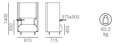 Pedrali Buddyhub BDH001T/140 – Jedno sedadlo s vysokým operadlom s otočným stolíkom