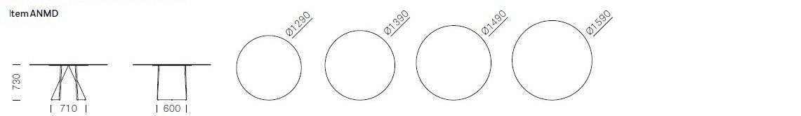 Dostupné priemery dosky: Ø 128 cm, Ø 139 cm, Ø 149 cm, Ø 159 cm