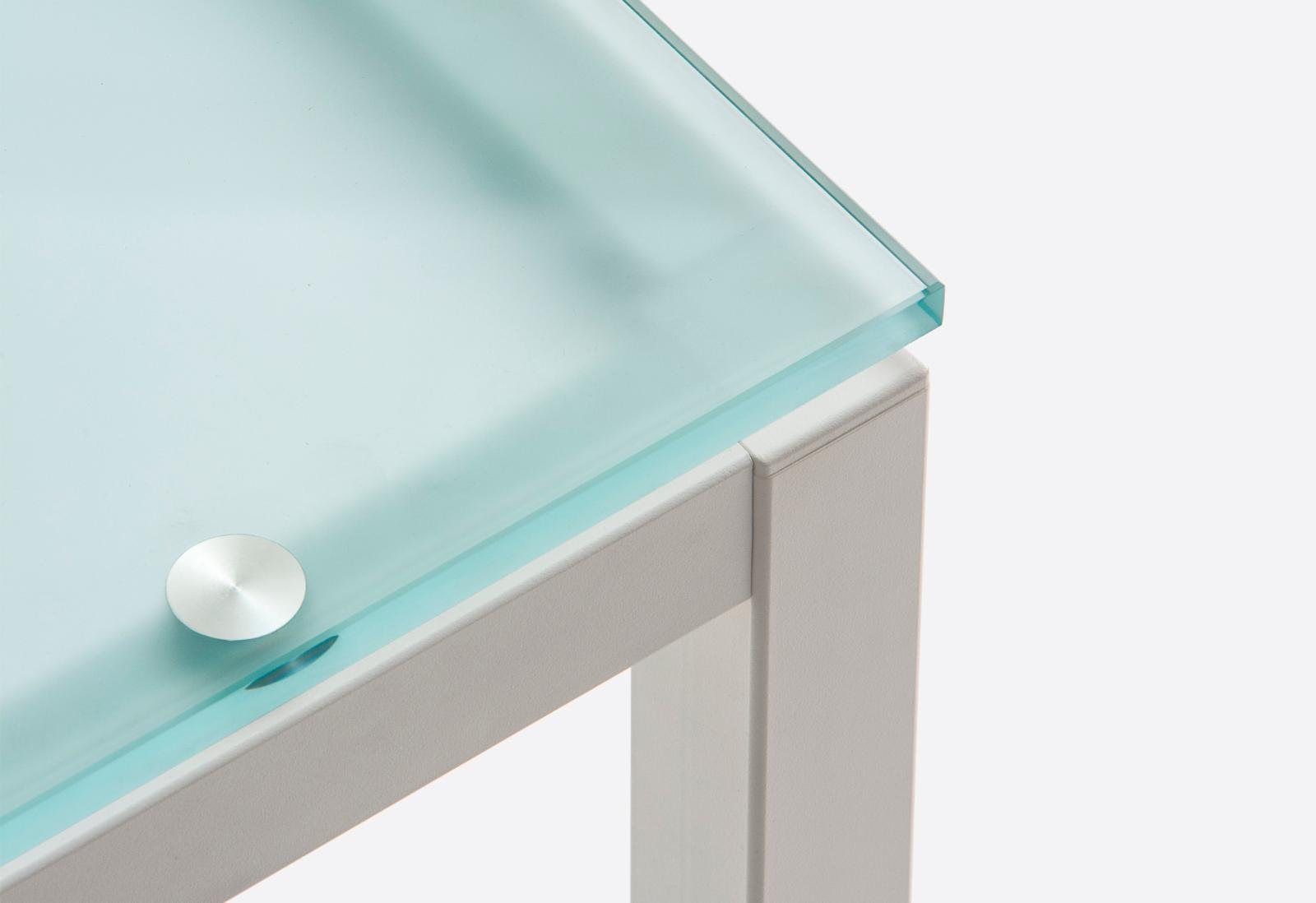 Stôl je vyrobený z oceľovej konštrukcie zo štvorcových rúr a z kvalitnej tvrdenej sklenenej dosky. Tento spoj zaručuje dlhú životnosť, jednoduchú údržbu a elegantný vzhľad.