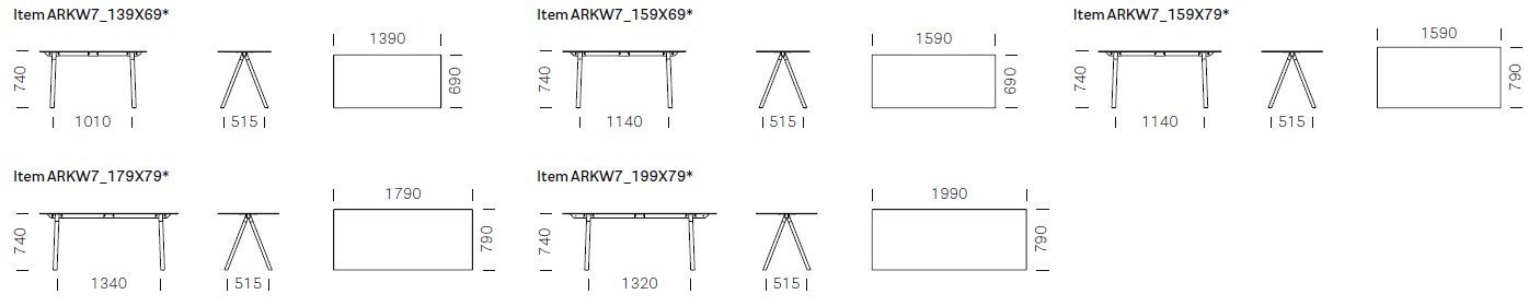 Položka ARK7_159 X 79 – rozmery: 1590 × 790 × 740 mm