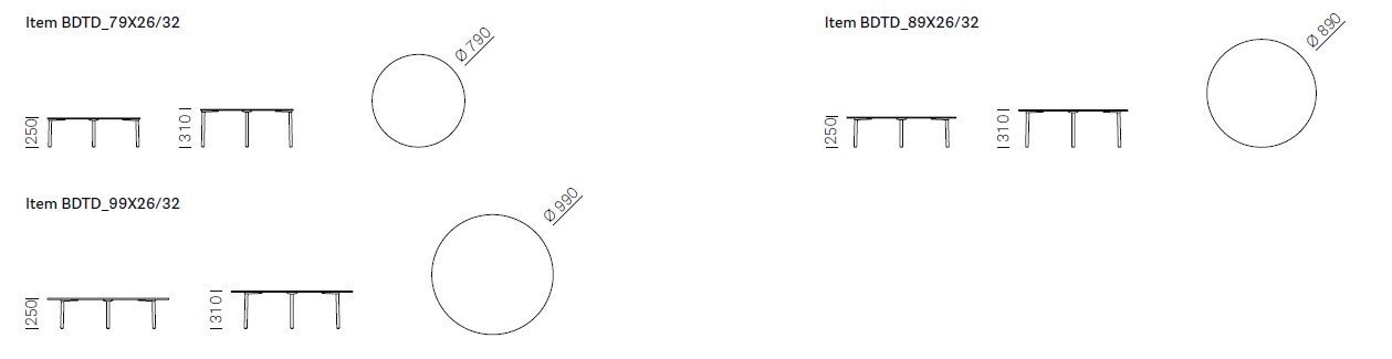 - Rôzne veľkosti: dostupné s kruhovou doskou v troch priemeroch pre rôzne potreby a typy priestorov.