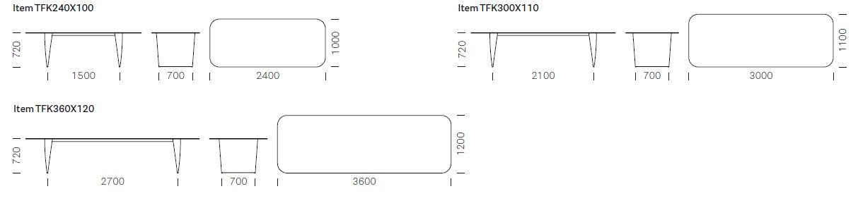 • TFK240x100 – 240 × 100 cm, výška 72 cm